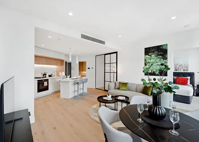 Dudley Street/Spencer Street巴士站近在咫尺,步行只需5分钟。 入住Brand New Luxe Living In Cbd 2 Bedroom With Pool Sauna Gym的客人可以在室内游泳池放松身心。